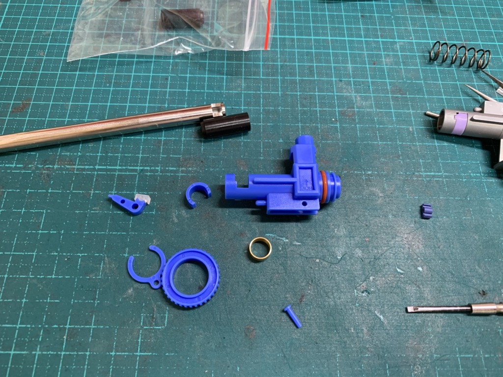 チャンバーも同梱されていた物に交換してインナーバレル、チャンバーパッキンを加工して組み直します。